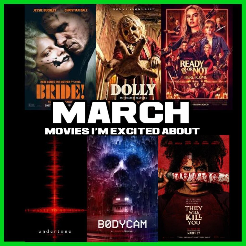 6th – The Bride – I have been excited for this movie since it was first announced. I am a huge Universal Monsters fan! The Bride being of my favourite monsters. I am loving the idea of this movie!! cannot wait to see it on the big screen!!